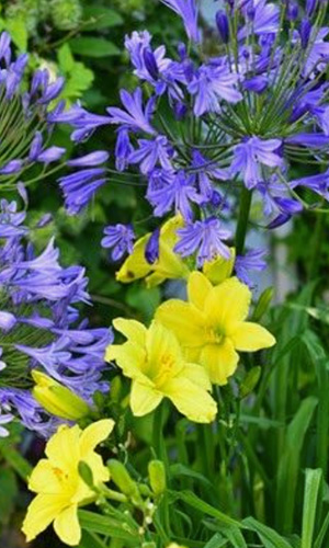 - Agapantos y hemerocallis: una combinación veraniega como pocas, alegre y festiva, perfecta para el jardín.