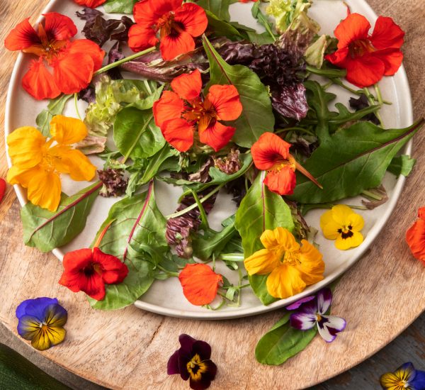 En un plato hondo, colocar unas bolas de manzana osmotizada. Colocar unos puntos de aguacate, unos puntos de yogur griego y la tapioca de manzana. Disponer flores de begonia alrededor. Acabar con una quenelle de sorbete de bergamota y las placas de yogur deshidratado. Finalizar con la sopa servida en jarra.