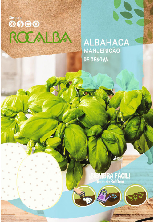 Instructions: 1 - Prepare a flower pot with good soil and place a disc. 2 - cover with 1 cm of fine earth and water. 3 - Needs constant humidity, however not in excess, for optimal germination. BASIL DE GÉNOVA: Intermediate growth. Broad leaves in spoon