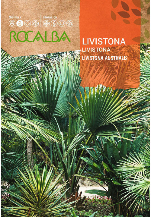 Palm tree belonging to the Arecaceae family, with shiny green big leaves resembling closed fans. Can reach great height. Slow growth. Deep fertile soils. Moderate watering, tolerates drought. Exposed to sun or semi-shade. Adult specimens tolerate modera
