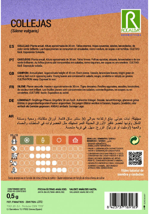 Planta anual. Altura aproximada de 30 cm. Tallos erectos. Hojas opuestas, sésiles, lanceoladas, de color verde brillante. Las hojas jóvenes se consumen en ensaladas, como verdura, en sopas ó en tortillas.