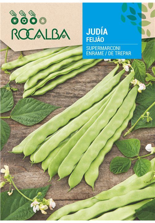 Trepar, de ciclo precoce. Rápido crescimento. Adaptada para estufa ou ar livre. Produção elevada e escalonada de grande qualidade. Formação lenta do grão. Vagens de 24 x 2,5 cm, planas verde claro e sem fios. Resistência ao Vírus comum.