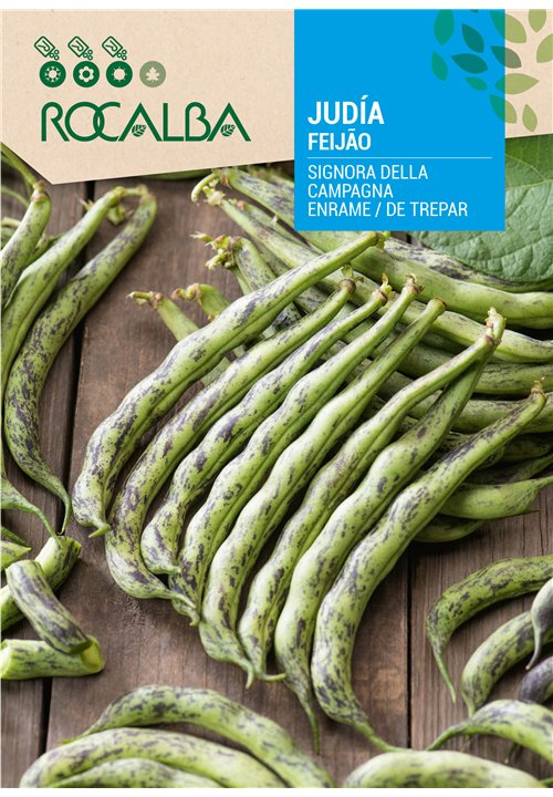 Trepar. Vagens carnudas para consumo em fresco, um pouco curvadas de 14-15 cm de longitude, sem fio, de cor verde, manchadas de vermelho escuro. Grão de cor verde creme com manchas vermelhas. Boas produções. Sabor e textura agradáveis.